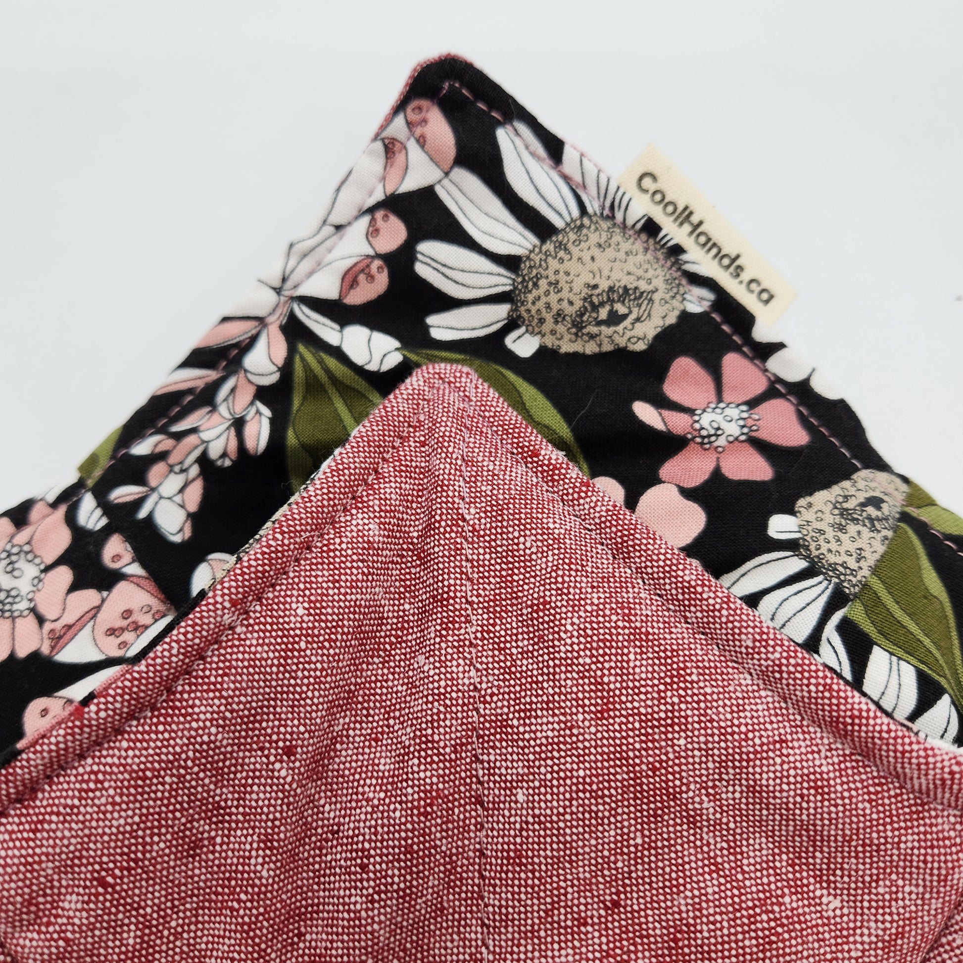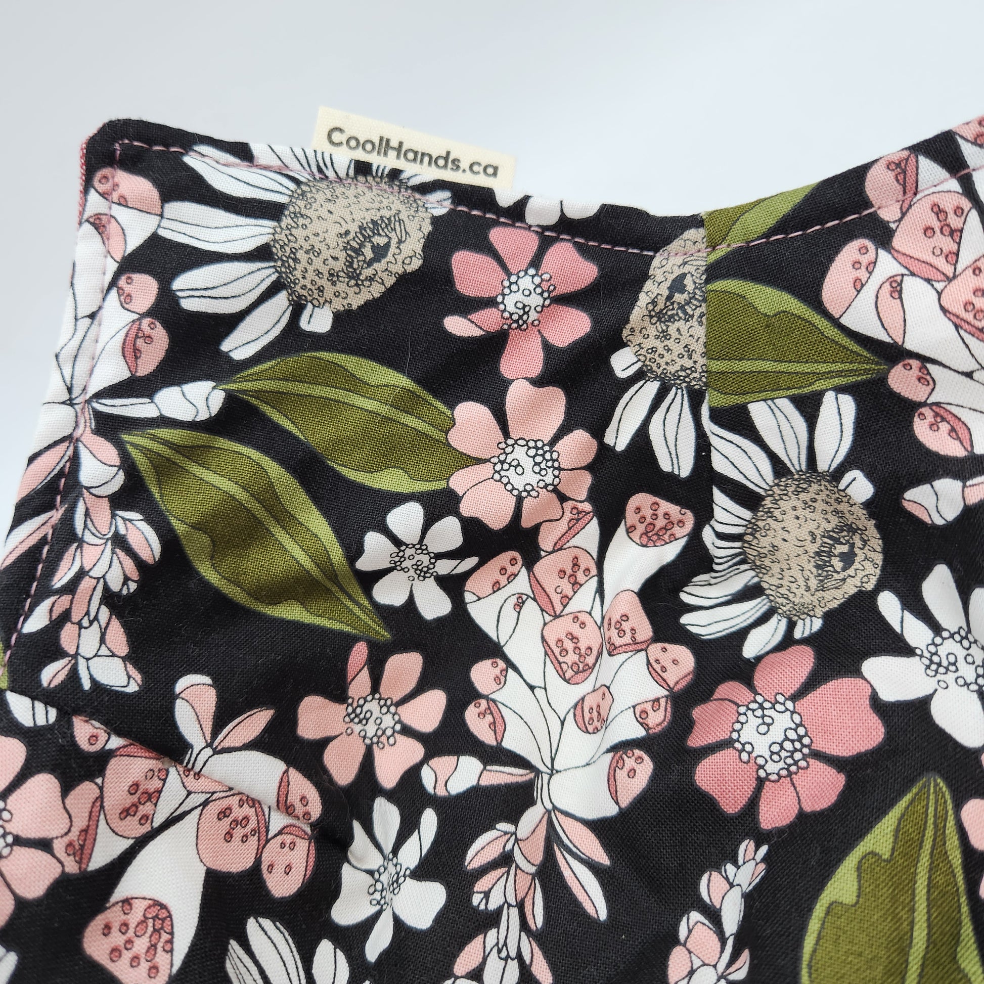 This is our newest floral and we just fell in love with the design. With a lovely assortment of petaled flowers in pink and white, and deep green leaves, on a black background, this is an elegant way to keep your hands comfy!