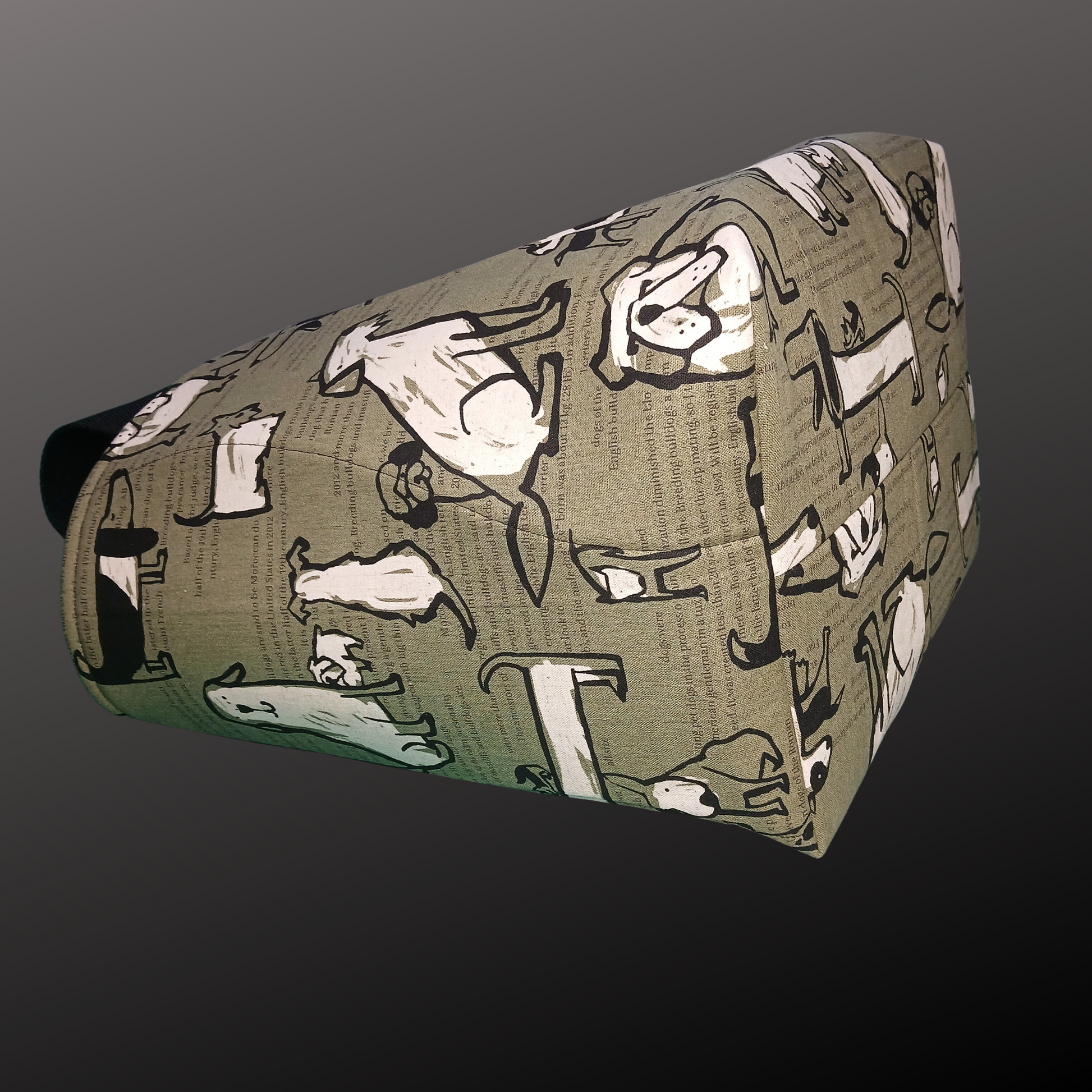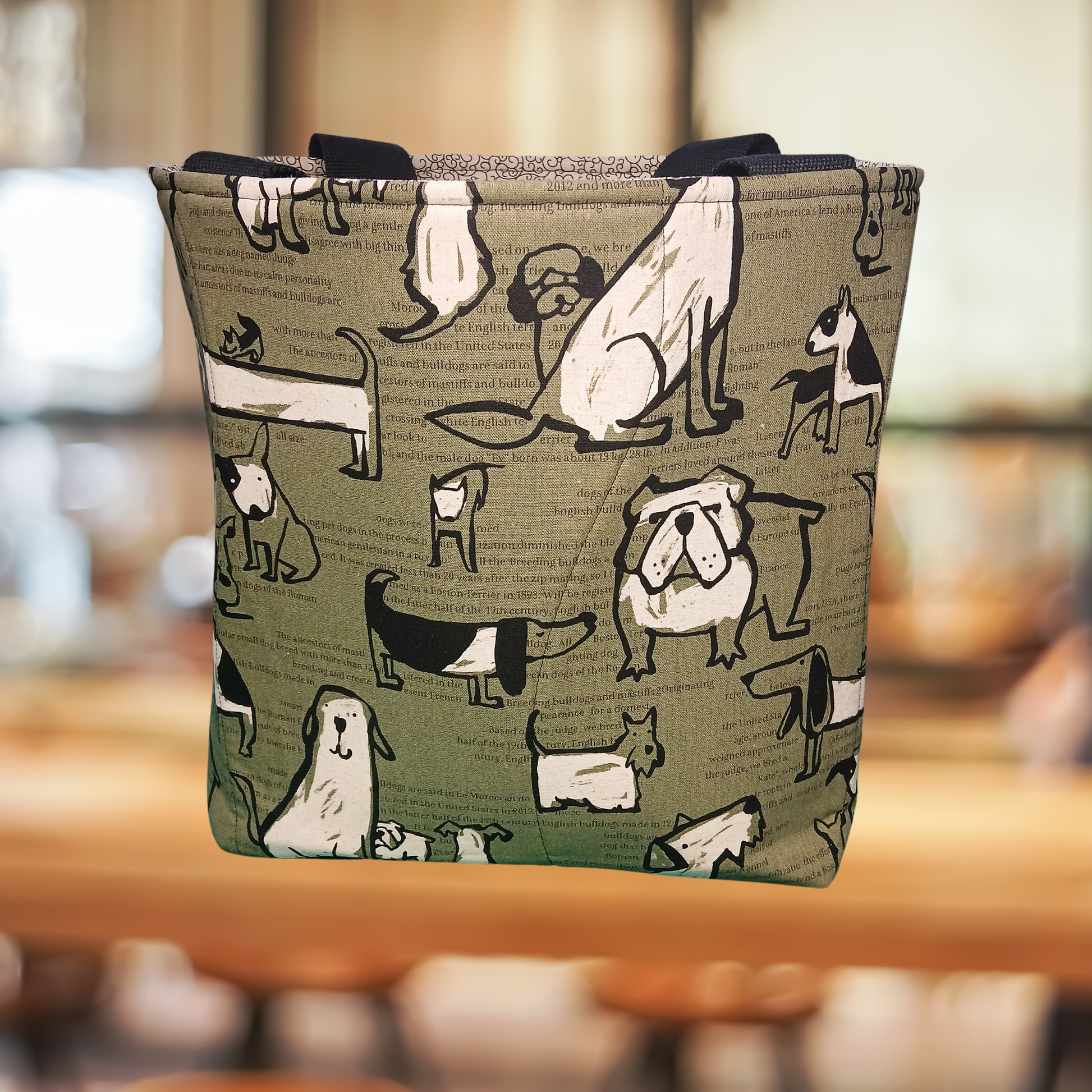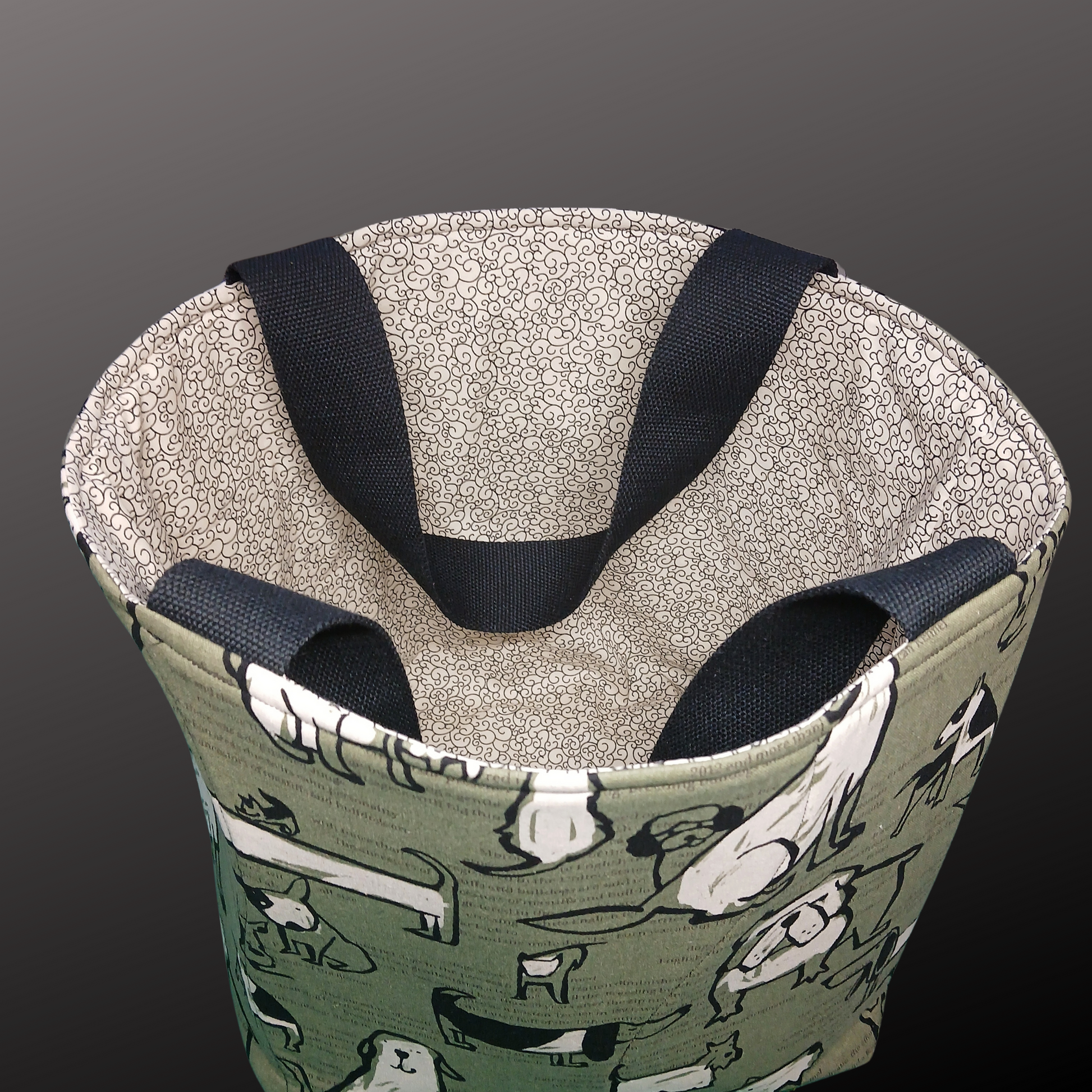 This large tote is made with foam interfacing so it's self supporting. We made this one extra large so it holds a LOT and has strong canvas webbing handles. It folds or squashes pretty flat but then springs back into shape so you can stand it on the self-check-out platform and load it easily, without it flopping over. The handles are double stitches so they're very strong! I made one for myself as a test, to make sure, and I've loaded it with canned goods, juice, frozen stuff, literally stuffed it, and said 'oof!' when I picked it up... and no handle issues whatsoever. I have been using the test one for 3 months for a lot of heavy lifting and it's still my favourite tote. Our Northern Peaks Bears tote is made the same way, just in a slightly smaller, more compact format.
